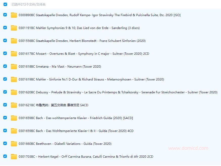 TOWER出品272张古典SACD ISO专辑大包子,封面随机选了一张专辑的,目录只截取了一小部分。 声明:本站所有文章,如无特殊说明或标注,均为本站原创发布。任何个人或组织,在未征得本站同意时,禁止复制、盗用、采集、发布本站内容到任何网站、书籍等各类媒体平台。如若本站内容侵犯了原著者的合法权益,可联系QQ:240949404我们进行处理。
